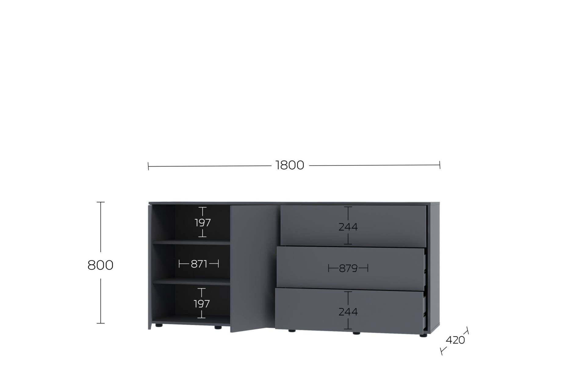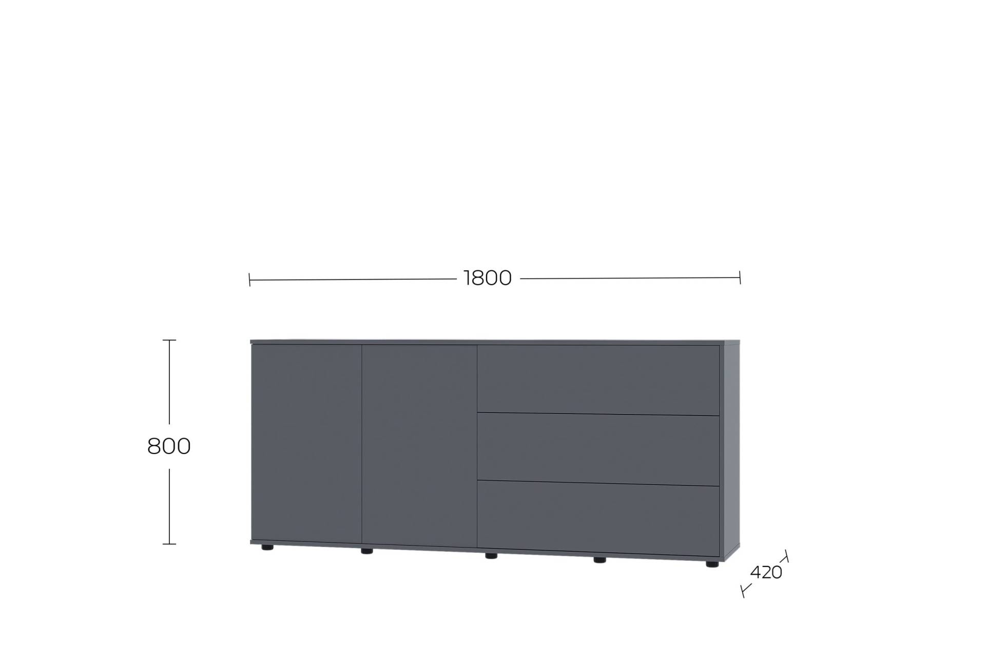 Комод Solo 180 2D_3Dr доступний у кількох актуальних кольорах, що легко поєднуються з різними стилями інтер’єру: