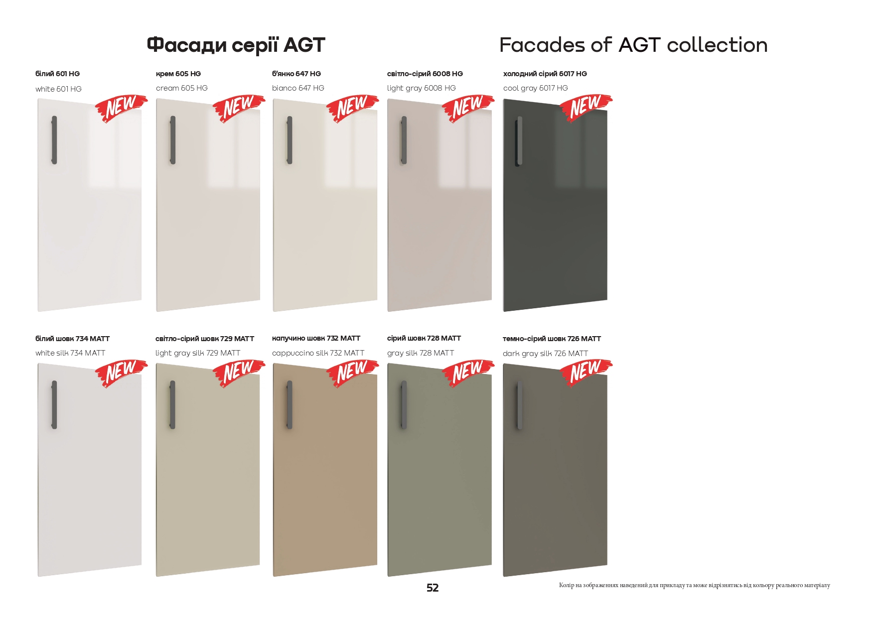Кухня «AGT» – це поєднання вишуканого стилю, сучасних технологій та практичності. Завдяки преміальним матеріалам і гладкому глянцевому покриттю ця серія стане ідеальним вибором для створення елегантного кухонного простору.